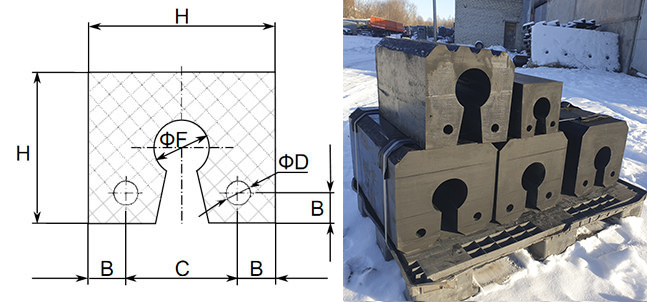 | H, mm | B, mm | C, mm | Ø D, mm | Ø F, mm | L, mm | Weight, kg/m |