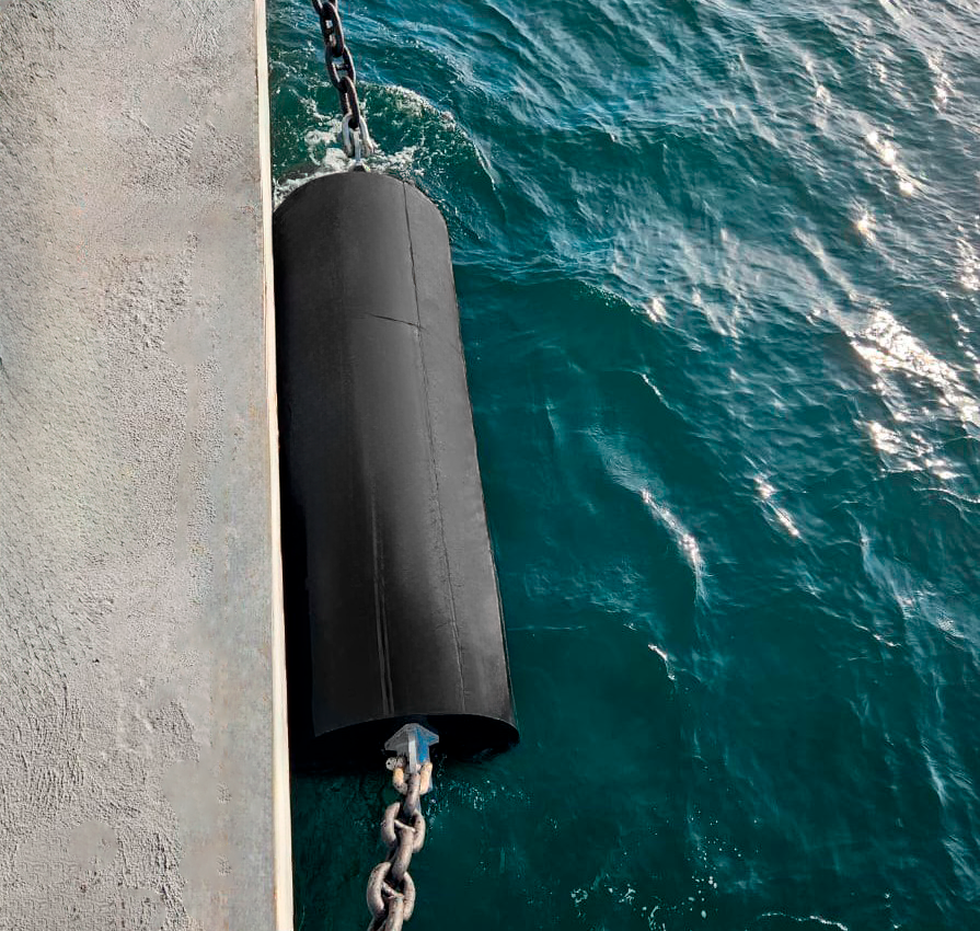 Cylindrical mooring fenders – cylindrical fender devices used worldwide. They have a simple shape that ensures easy installation. Due to their reaction force and energy absorption, they are ideal for docks serving both large and small vessels. Cylindrical fender devices are mounted horizontally or vertically on dock walls in one or two rows. The placement of fenders on the dock depends on the dock structure, mooring conditions, and the possibility of vessel docking.