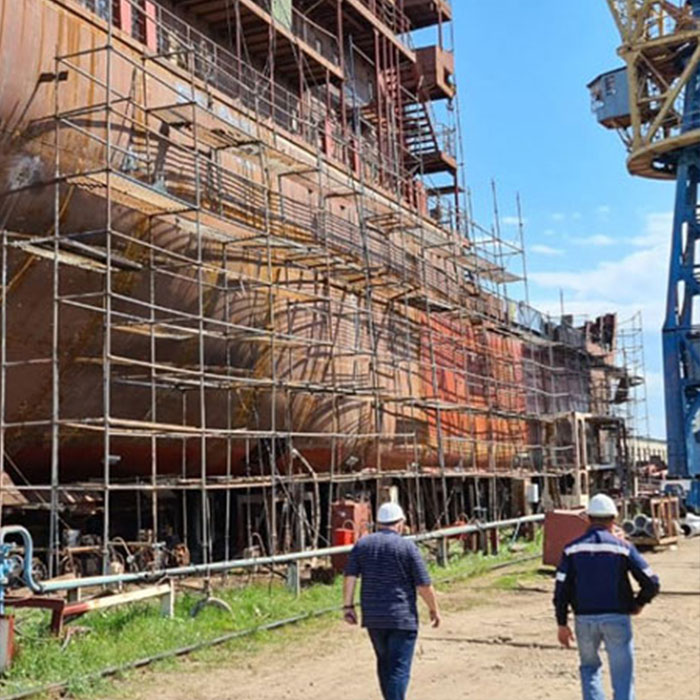 "Current work includes installation of ship fittings, delivery of equipment and materials for hull outfitting, mounting of equipment foundations, loading pumps, transformers, and watertight doors. Additionally, welded outfitting is being installed, foundations for masts and radar posts are being set up, and preliminary installation is underway for ballast-drainage systems, fresh water cooling, fuel reception and transfer, water firefighting, diesel generator cooling systems, and standalone air conditioning units. Assembly and welding of propeller shaft brackets and rudder blades are in progress, along with manufacturing hatch covers," the regional government's press service quotes Vladimir Kayumov.
