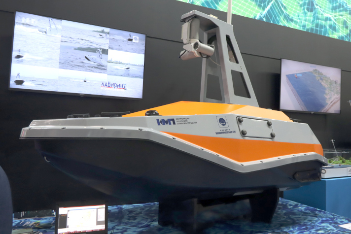 The concern "Morinformsistema-Agat," part of the "Marine Instrumentation Corporation" (KMP), presented an experimental model of the unmanned boat (UB) "Labyrinth" at the "NEVA 2023" exhibition. This marks the first time the boat has been showcased in St. Petersburg, as the company told a Sudostroenie.info correspondent. Although the new model was previously seen at the "Army-2023" forum in Moscow, it is being exhibited for the first time in this city.